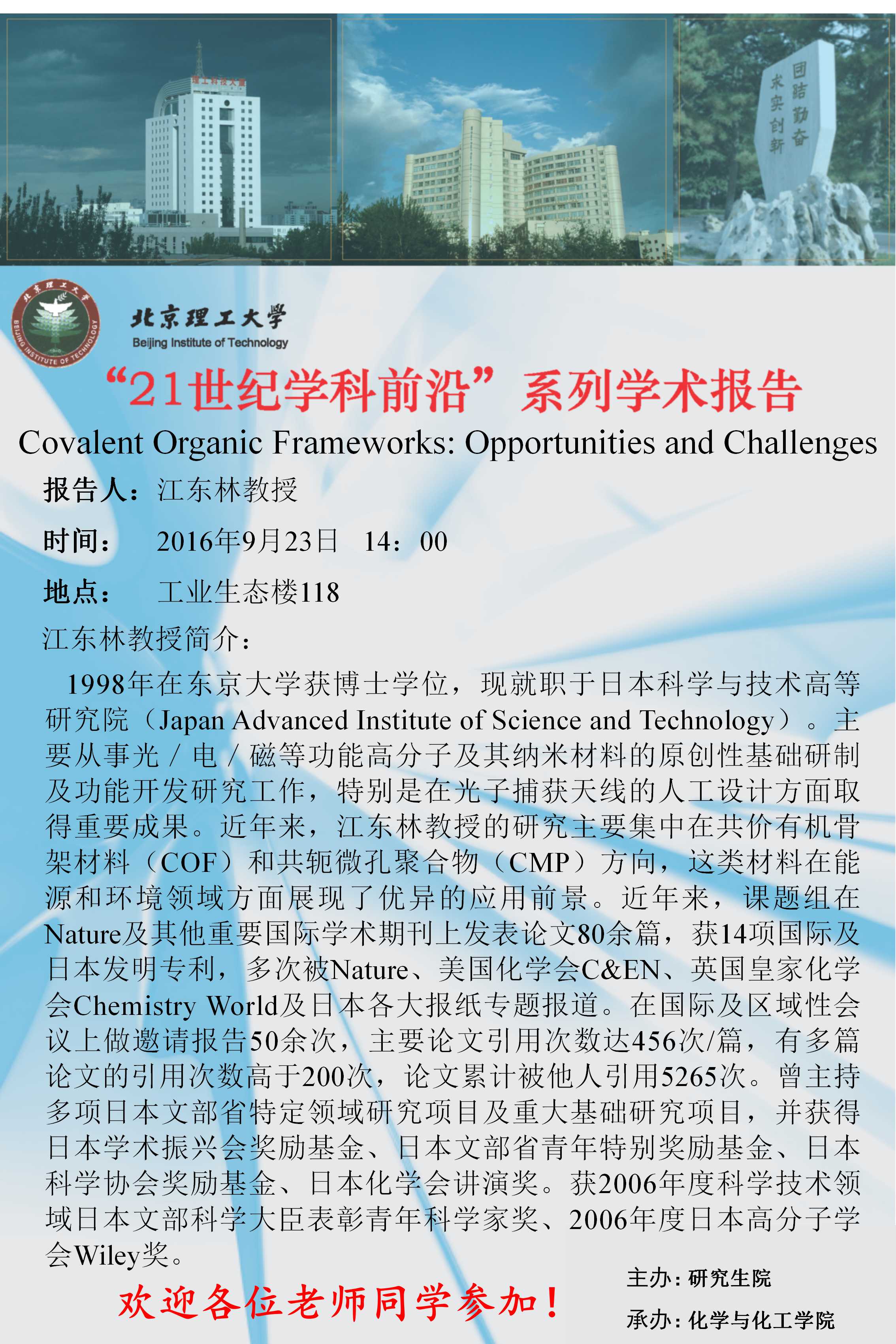 - 【化学与化工学院】“21世纪学科前沿”江东林教授学术讲座通知