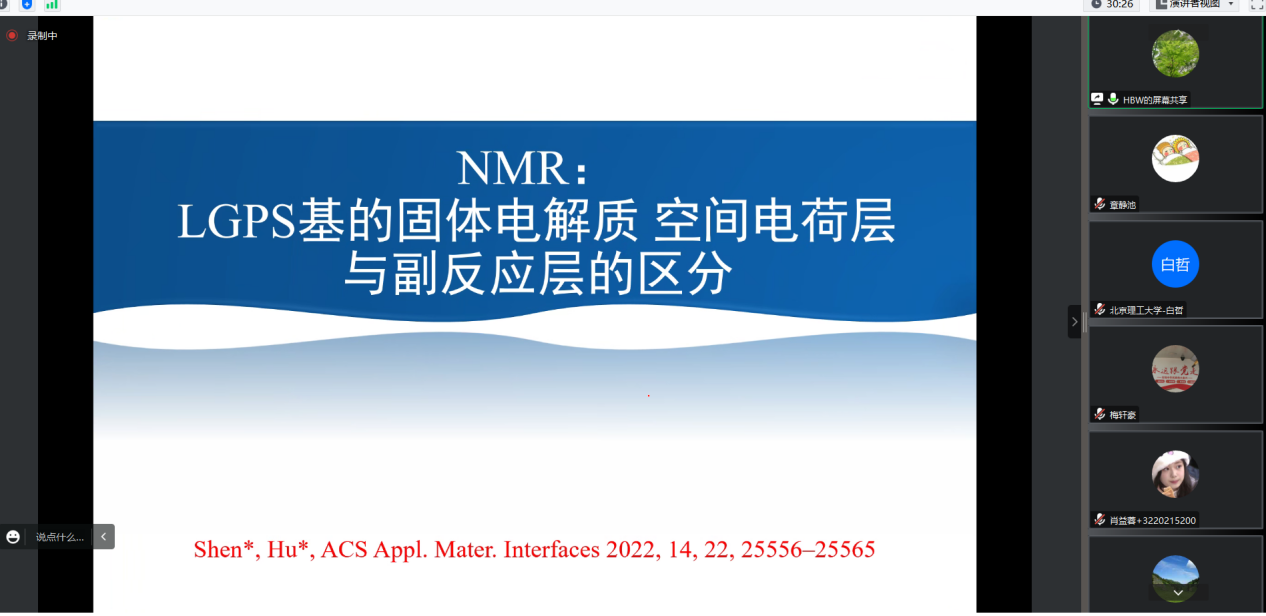 【21世纪学科前沿】华东师范大学胡炳文教授 受邀做题为“锂电池中的磁共振:从核磁共振到顺磁共振”的学术报告