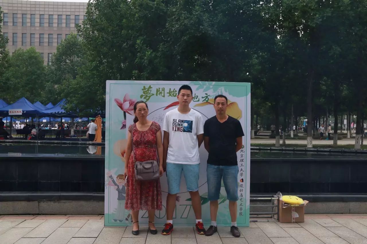 七时许,大一新生们就开始陆陆续续的报到了。设计学院今年的新生中,第一位报到的新生叫万巍巍,他和爸爸妈妈在迎新喷绘墙前的合影记录了他大学开始的那一刻。