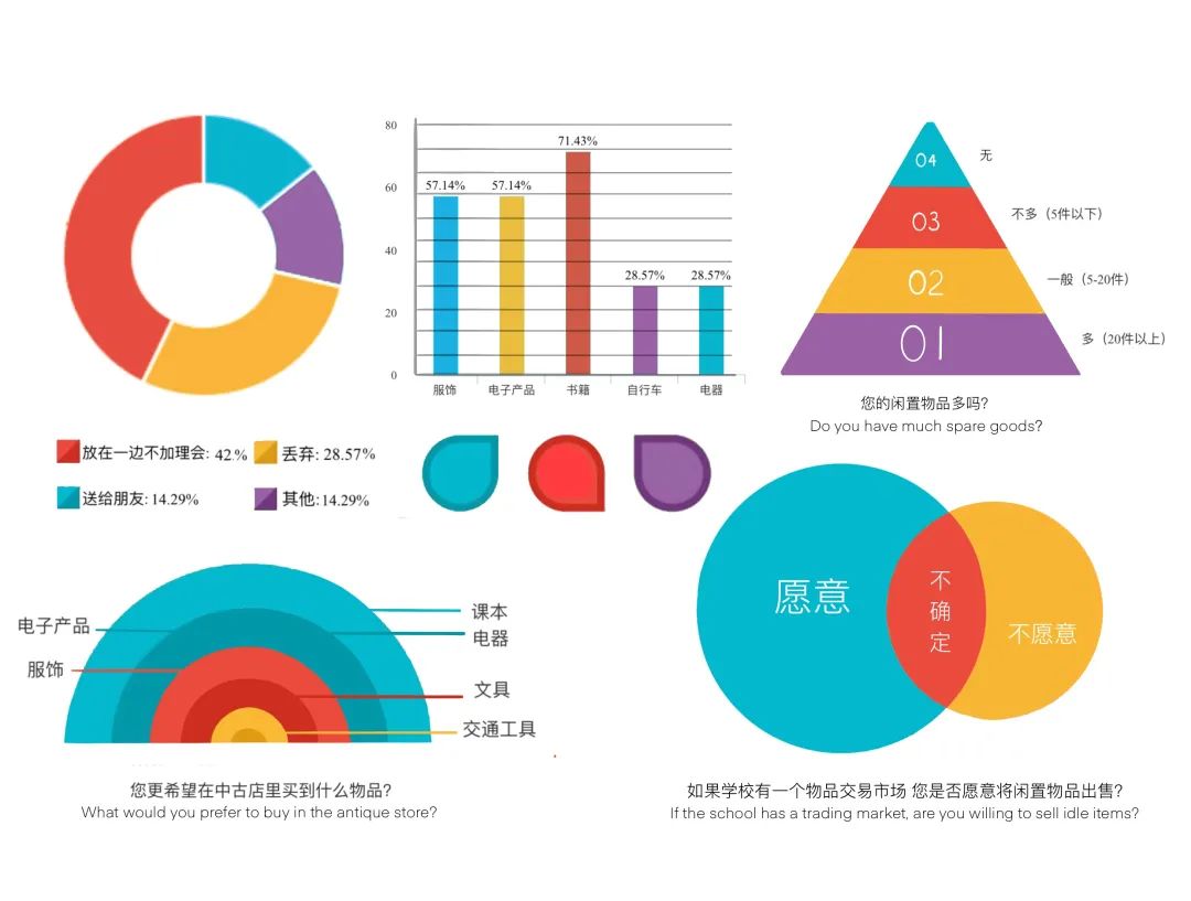 而经过调研发现,我校同学不去处理这些闲置物品的原因主要有以下两点:1.学校内无合适的平台2.贩卖后会再次对已贩卖物品有需求。另外还有一种特殊但普遍的情况:即结课作业、科研模型、竞赛作品等物件虽然被闲置但依旧具有纪念意义,而同学们更希望自己的作品能有以一种特殊的形式被保存或留存下来。