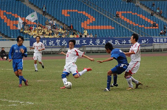 这时凌晨就开始坐飞机从北京风尘仆仆赶来观战的的我校常务副校长李志祥也刚刚走进赛场大门,他风趣地和金志扬总教练和王力教练开玩笑说:看来今天我来对了,我刚进赛场大门,皮球也进了对方大门,和我一起来了三个同志,看来今天估计要进三个球啊!