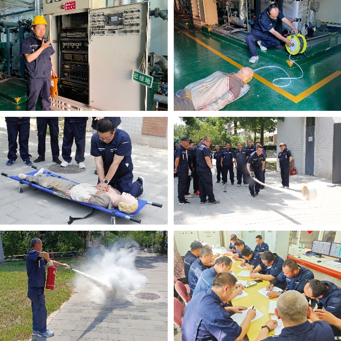 本次演练模拟了火灾(灭火、逃生、救援)事故、触电(停电、逃生、救援)事故,通过实战场景的模拟,全面检验员工应急响应、故障抢修、协同配合等综合能力。随着演练总指挥一声令下,各应急小组迅速集结,按照应急预案流程,有条不紊地开展安全警戒、有序疏散、应急救援、故障排查等工作。整个过程紧张有序、环环相扣,充分展现了后勤队伍过硬的专业素养和高效的应急处置能力。演练结束后,公司组织全体一线人员进行笔试考试,进一步巩固应急知识与技能。