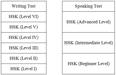 The new HSK is an international standardized exam that tests and rates Chinese language proficiency. It assesses non-native Chinese speakers’ abilities in using the Chinese language in their daily, academic and professional lives. The new HSK consists of a writing test and a speaking test, which are independent of each other. There are six levels of writing tests, namely the HSK (level I), HSK (level II), HSK (level III), HSK (level IV), HSK (level V), and HSK (level VI). There are three levels of speaking tests, namely the HSK (beginner level), HSK (intermediate level), and HSK (advanced level). During the speaking test, test takers’ speeches will be recorded.