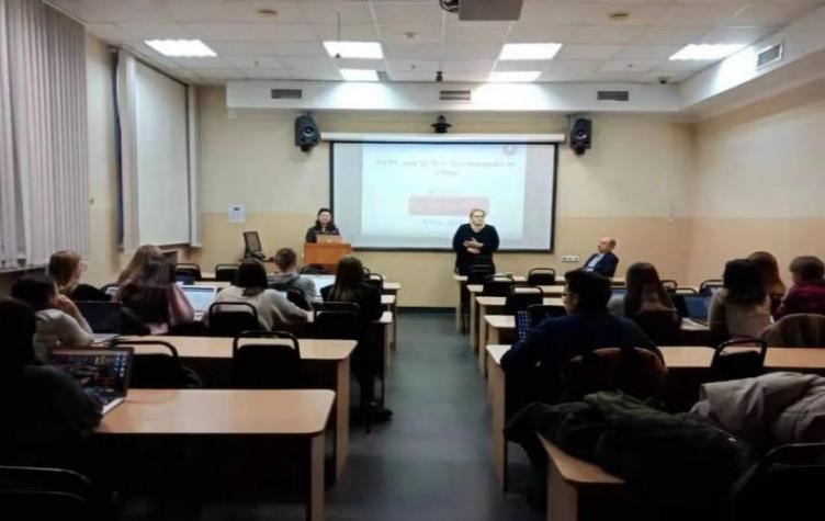 彭海青教授在圣彼得堡大学法学院为中国法专业的俄罗斯学生授课