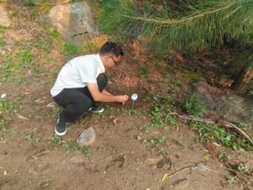 午后,实践团奔赴钟灵毓秀的北武当山。在苍翠掩映、流水潺潺间,紧扣生态调研主题,师生们严谨规范地采集了土壤与水样。这一掬泥土、一瓶清泉,承载着方山生态环境的本底密码,将成为后续科学评估与深度研究的坚实基石。