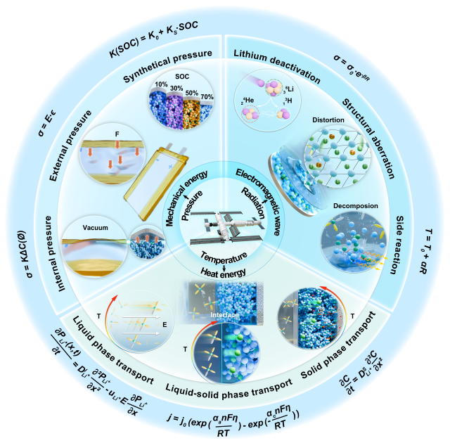 图2.电池性能参数与极端环境条件的对应关系和定量公式。