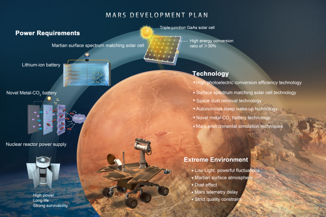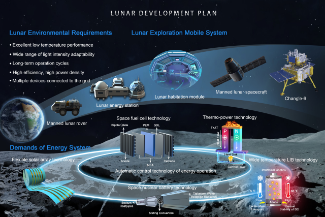随着载人登月、火星移民及小行星资源开发任务的不断推进,电化学储能系统被赋予更高的可靠性、安全性与环境适应性要求。本综述前瞻性地展望了下一代储能系统在月球超长极昼极夜极寒、火星稀薄大气及小行星表面高辐射等环境下的运行模式,构建了探月、探火的能源技术需求图谱。提出适用于月球昼夜温差剧烈变化的特异功能电池材料设计策略(表面温差高达300°C),以应对热胀冷缩、界面失稳及电解质降解等核心挑战。在火星探测任务中,针对火星表面具有显著的昼夜温差(-125°C至20°C)与富含二氧化碳的大气特性,提出特异空气气氛下的Li-CO2电池等金属电池新体系,支撑未来火星基地电池的持续运行。该愿景不仅聚焦材料本体性能的极限突破,也强调能源系统与深空环境的深度耦合,为深空电能源科技的创新发展提供战略支撑。