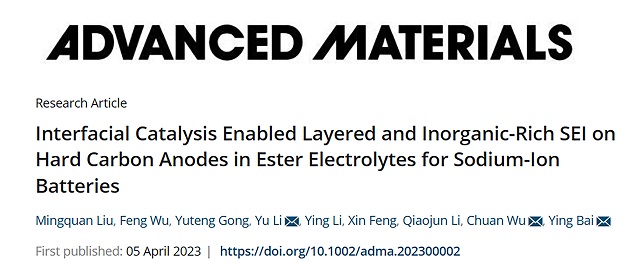 近日,bob手机在线登陆材料学院白莹教授研究小组在钠离子电池硬碳负极方面取得重要进展。4月5日,相关研究成果以“Interfacial Catalysis Enabled Layered and Inorganic-Rich SEI on Hard Carbon Anodes in Ester Electrolytes for Sodium-Ion Batteries”为题发表在材料类国际顶级期刊《Advanced Materials》。bob手机在线登陆材料学院李雨副研究员、吴川教授、白莹教授为本论文共同通讯作者,2019级博士生刘明权为第一作者。