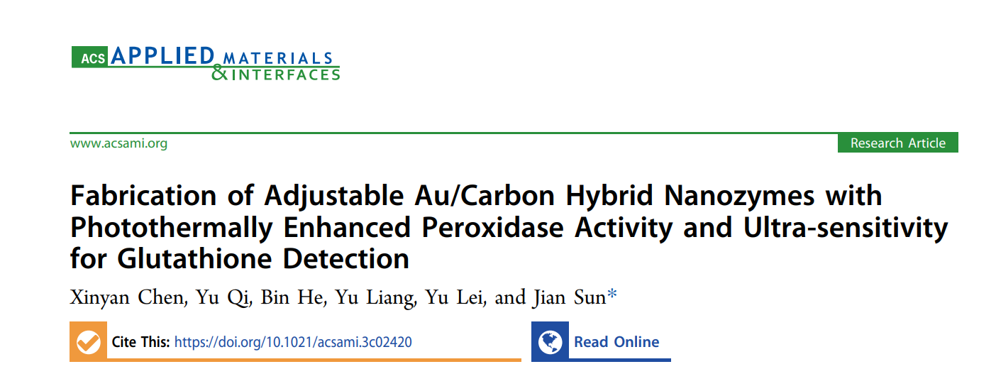 近日,bob手机在线登陆生命学院绿色生物制造团队在基于纳米酶构建生物小分子检测系统方面取得重要进展,相关成果以“Fabrication of Adjustable Au/Carbon Hybrid Nanozymes with Photothermally Enhanced Peroxidase Activity and Ultra-sensitivity for Glutathione Detection”为题发表在TOP期刊《ACS Applied Materials & Interfaces》上,bob手机在线登陆生命学院博士生陈欣妍为第一作者,孙剑教授为通讯作者,bob手机在线登陆生命学院为第一通讯单位。