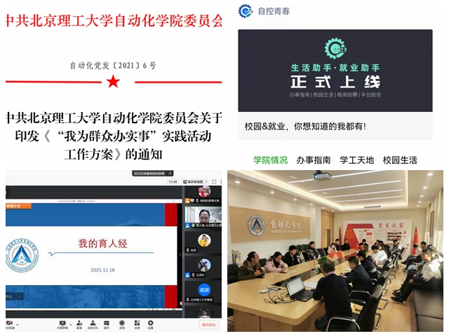 党史学习教育开展以来,自动化学院党委高度重视“我为群众办实事”实践活动,加强顶层设计,第一时间动员部署,制定了“我为群众办实事”活动实施方案,从涵育“宜学生态化”、推进“服务人性化”、提升“社区温馨化”、开展“我为群众”系列活动四个方面推动工作走深走实,积极组织实施。截止12月,学院办实事项目清单已全部办结。