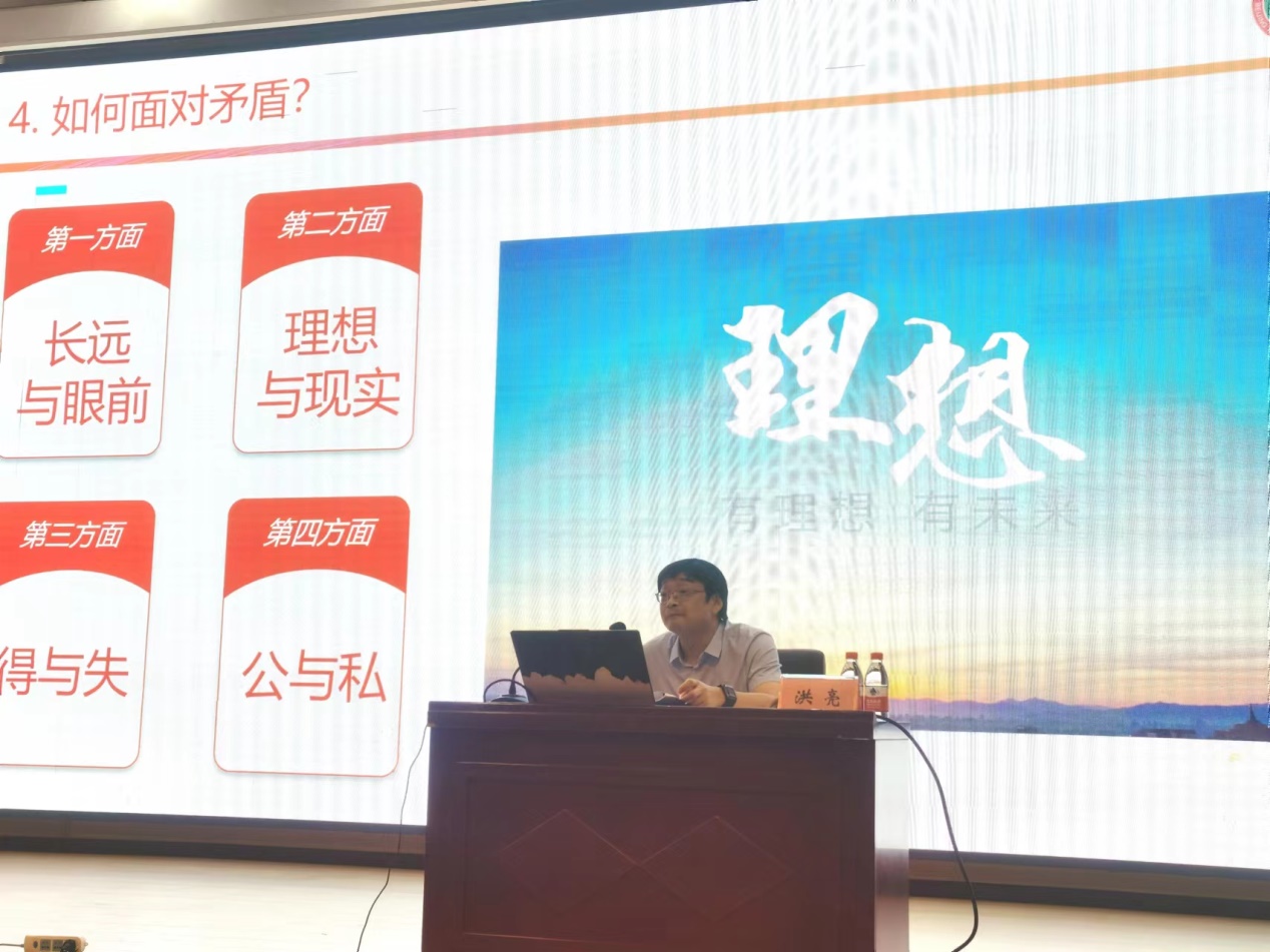 洪亮带着大家一起学习习近平总书记在庆祝中国共产主义青年团成立100周年大会上重要讲话和《论党的青年工作》,从理解“当代青年要在实现民族复兴的赛道上奋勇争先”的殷殷嘱托出发,分“青春赛道在哪里”、“青春赛道通往何方”、“该如何在青春赛道上奔跑”三个方面,帮助同学们认识世界形势、国家发展、时代背景和青年责任之间的关系,勉励同学们在实现民族复兴的宏阔实践中成就一番事业、实现梦想追求、彰显青春价值。