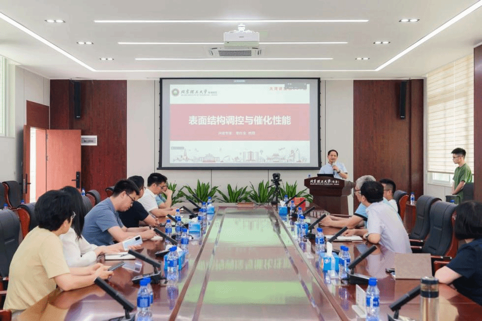 曹传宝作了题为“表面结构调控与催化性能”专题讲座,对涉及光催化及电催化产氢过程中氧析出反应(OER)所使用的催化剂性能与表面结构之间的关系进行了深刻讲解。他表示,在“双碳”目标下,高效实现能源转化和储存是重要的研究课题,利用太阳能产氢是实现可再生能源转化和存储的重要途径。光催化及电催化产氢过程中氧析出反应(OER)所使用的催化剂性能与表面结构之间的关系备受关注,揭示其催化本质、认识其规律性是化学化工科学技术中令人期待的重大课题。曹传宝团队提出基于催化界面吸附状态优化,实现催化剂动力学优化的策略,通过对光催化及电催化产氢过程中所使用的催化剂Co(OH)2以及层状镍铁双金属氢氧化物NiFe-LDH表面进行修饰,实现了对其表面电子结构的调控,进而实现对其OER催化性能调控。
