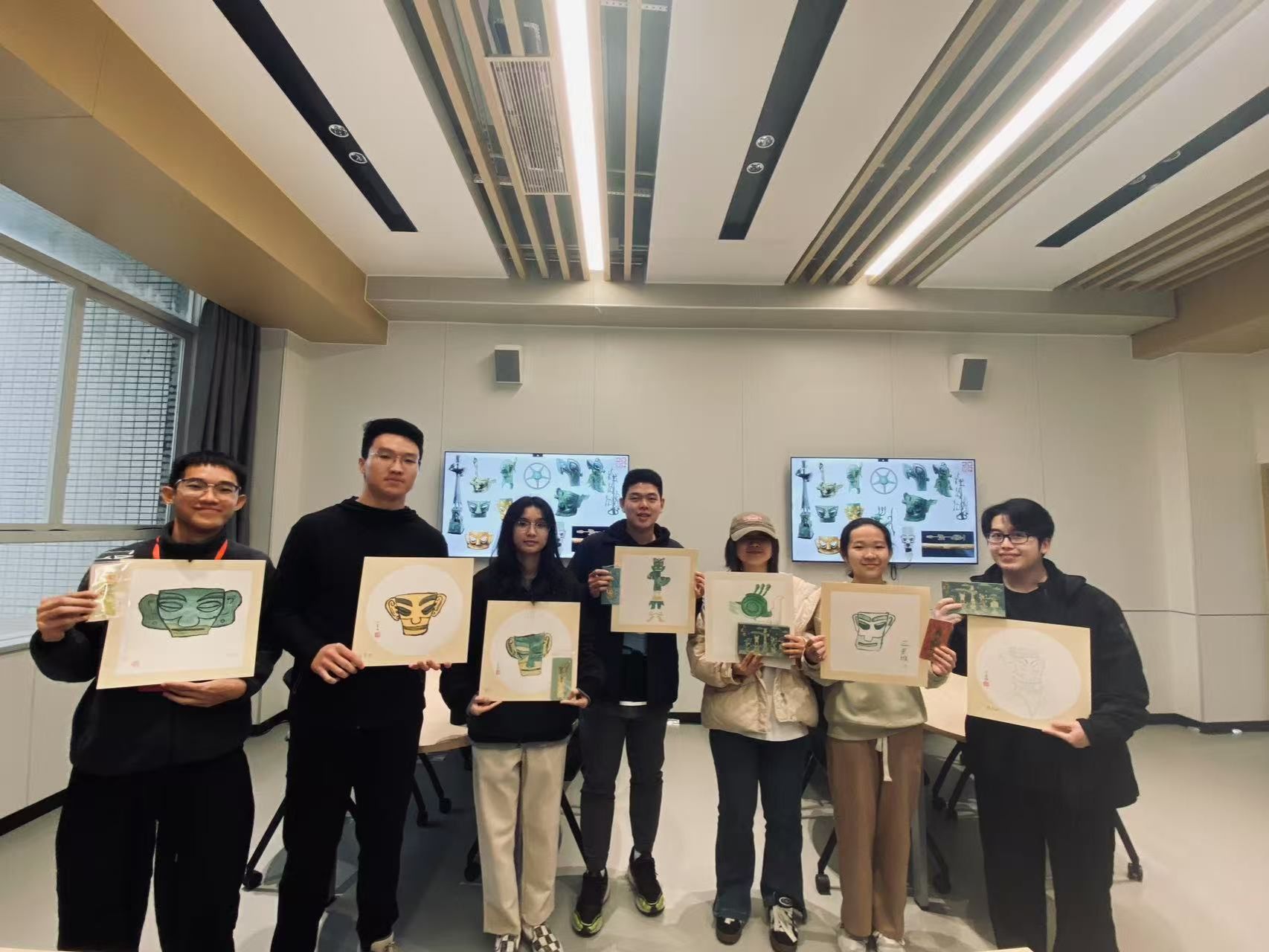 4月1日,留学生们前往珠海横琴文化艺术中心参观“古蜀瑰宝——三星堆与金沙”文物特展。形态各异的青铜器、金器、玉器等百余件珍贵文物,生动呈现了三千年前古蜀先民的神秘信仰与精湛工艺,引人赞叹。